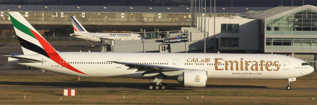 | Emirates Boeing 777-31HER A6-ENC operated their lunchtime flight to Dubai - its first visit to BHX |