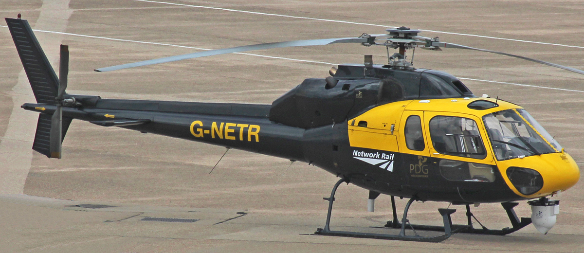 | Network Rail Ecureuil 2 G-NETR parked up on the Elmdon apron between local flights |